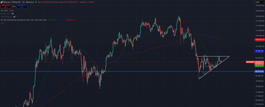 價格走勢解析 本週 BTC 報價 $92,000,ETH 報價 $3,150。兩者均呈現「波幅收窄」的整理型態。