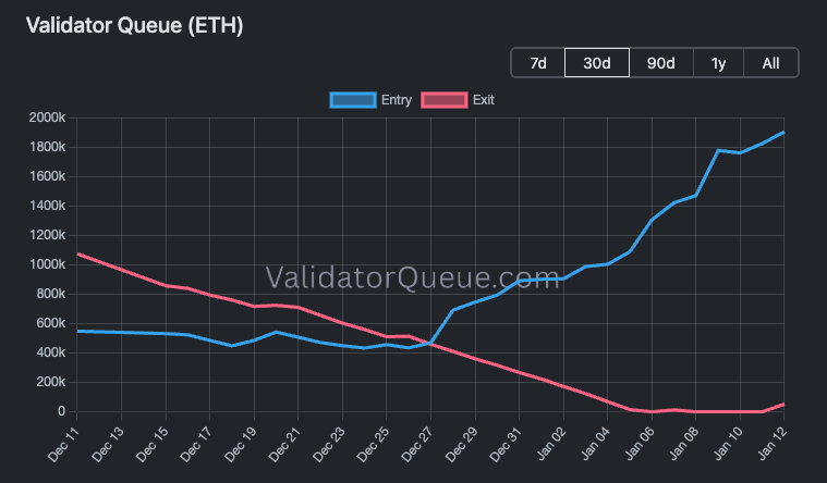 表象:Validator Queue 排隊進場人數激增(藍線上升),看似機構入場。