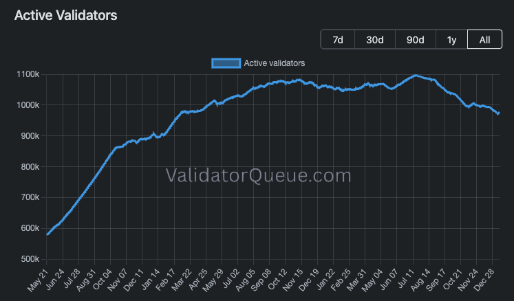 ETH:雖然近期因 BitMine 瘋狂質押導致 Validator Queue(驗證者排隊)數據看似利好,但實質上活躍驗證者數量(Active Validators)自 2025 年 7 月以來呈下降趨勢,顯示基本面並未顯著改善,純靠機構買盤支撐。
