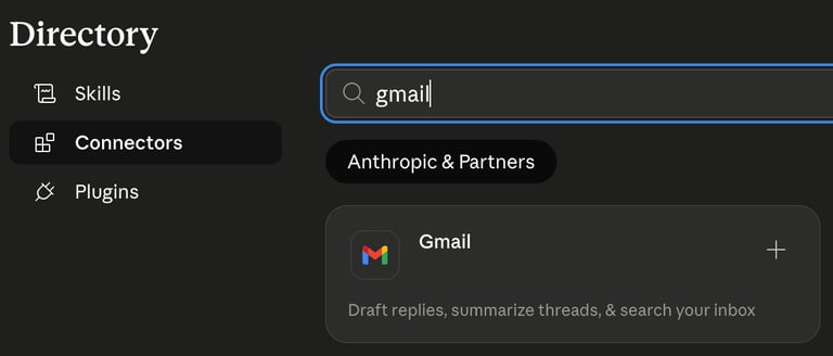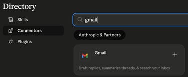在 Claude - Customize - Connectors 選擇 Gmail