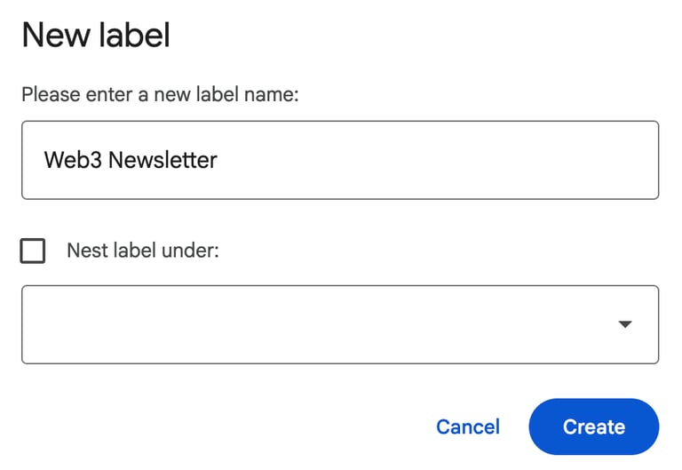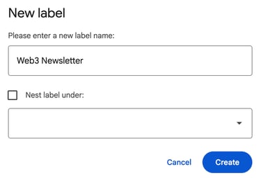登入 Gmail 網頁版後,在左側 sidebar 點擊「Labels」旁邊的「+」,建立一個名為 Newsletter 的 label。