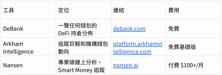 可自訂部分: 將 [DeBank / Arkham / Nansen] 替換為你實際使用的平台。如果你有付費版 Nansen,可以額外提供 Smart Money 標籤的截圖,分析結果會更精準。