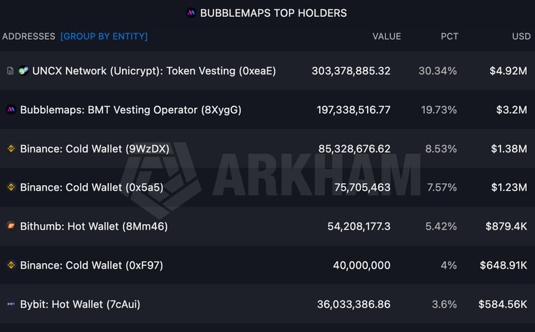 在 Arkham 上,則可以找到指定代幣的前幾名持倉分布。