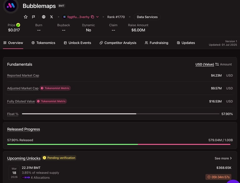 前往 tokenomist 搜索目標項目,重點查看「Upcoming Unlocks」頁面。