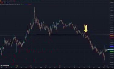 BMNR/ETH 的 Ratio 目前正處於最後的關鍵支撐位。這條線一旦失守,就確認了 BMNR 失去了作為「ETH 槓桿」的屬性。