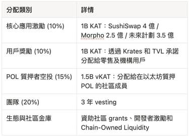 鎖定期: 所有發行時分發的 KAT 鎖定 9 個月,最遲於 2026 年 2 月 20 日解鎖