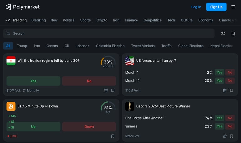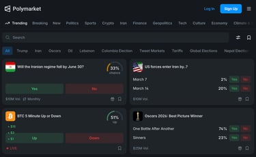 Polymarket 是全球最大的去中心化預測市場平台,建基於 Polygon 區塊鏈。簡單來說,它是一個「鏈上預測平台」——你可以用真金白銀對現實世界的事件結果下注。