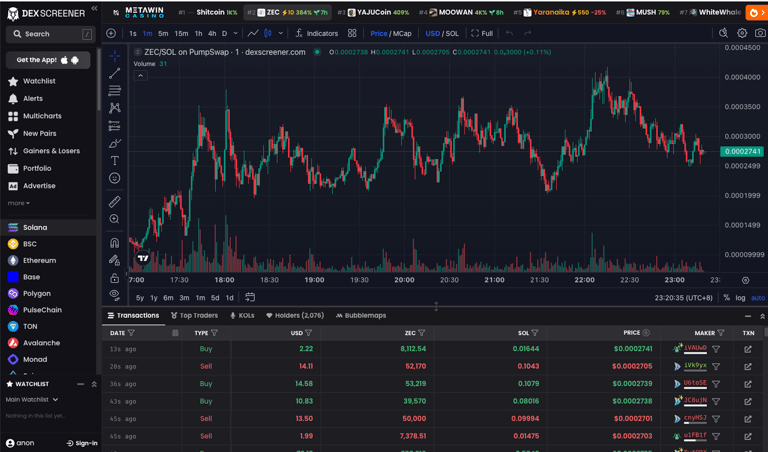 用途: 監控土狗幣 (Meme Coin) 的流動性與即時走勢。