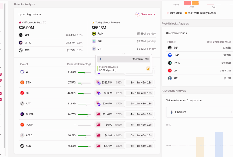 ChainLab 點評: 「防砸盤神器」。買幣前 Check 一 Check,如果下星期有幾億美金嘅幣解鎖 (Unlock),你依家衝入去即係幫人接飛刀,等解鎖拋壓消化完再考慮進場。