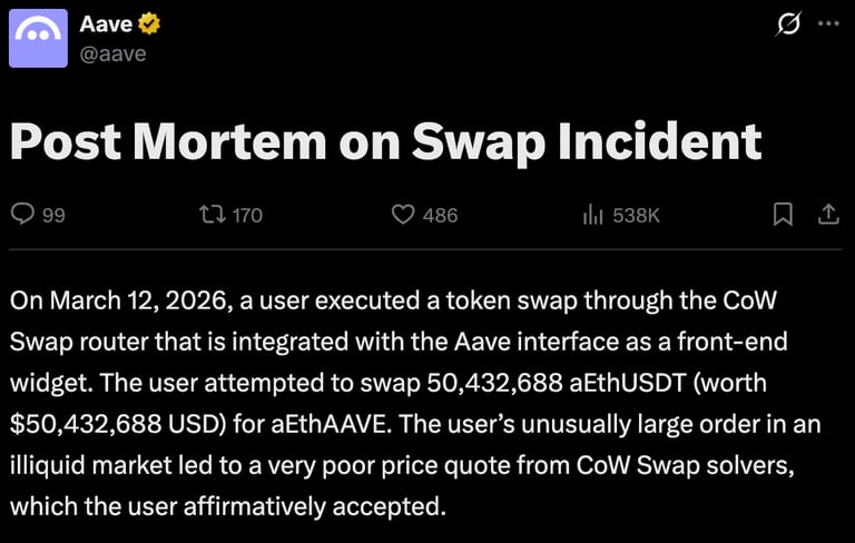 事件發生數日後,Aave 官方在 X 發布了正式的事後報告(Post Mortem),進一步釐清了幾個關鍵事實。