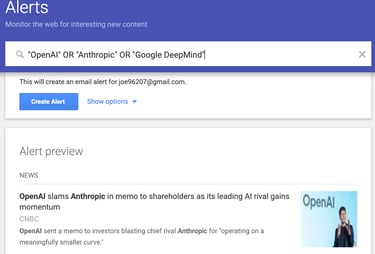 相比社群媒體的「快」,Google Alerts 的優勢在於「深度」與「廣度」。它能幫你抓取到 X 上可能沒人分享,但卻很重要的官方新聞稿、深度技術文章或企業財報。