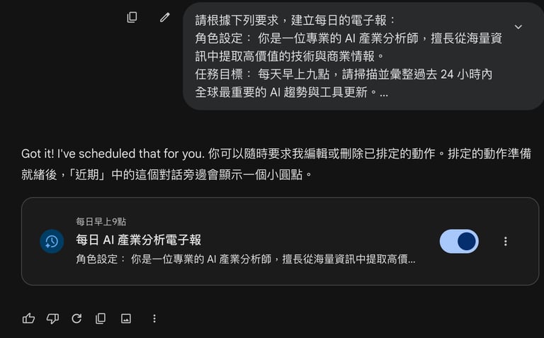 任務目標: 每天早上九點,請掃描並彙整過去 24 小時內全球最重要的 AI 趨勢與工具更新。