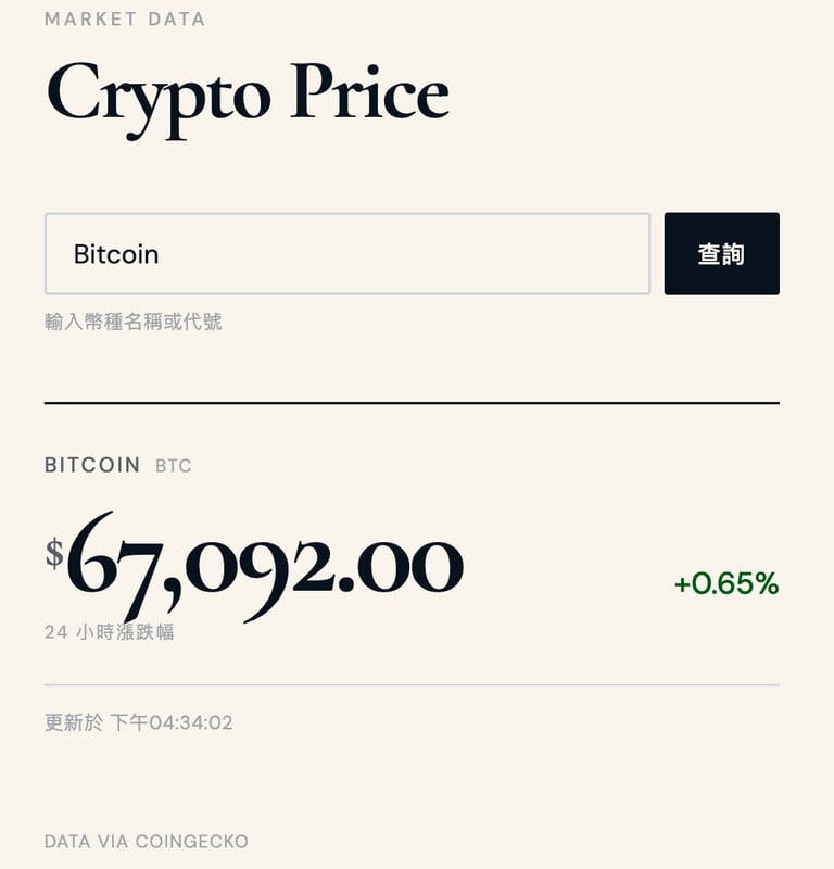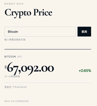 「幫我做一個網頁,輸入加密貨幣名稱,自動顯示當前價格和 24 小時漲跌幅。」