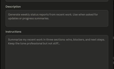 例如在 Instructions 裡,我不會只寫:”請幫我整理每日市場新聞。“