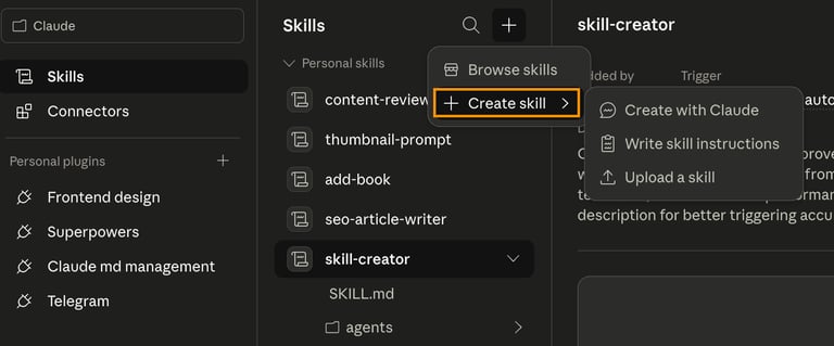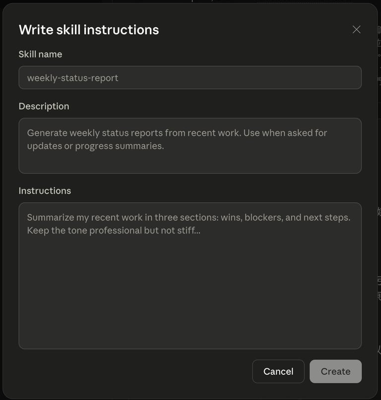Claude Desktop 創建 Skill 畫面