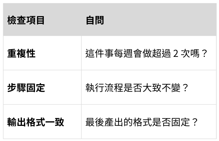 Prompt 解決的是一次需求,Skill 解決的是重複工作。真正值得建立的 Skill,不是看起來很厲害的自動化,而是那些你下週、下個月還會繼續使用的工作 SOP。