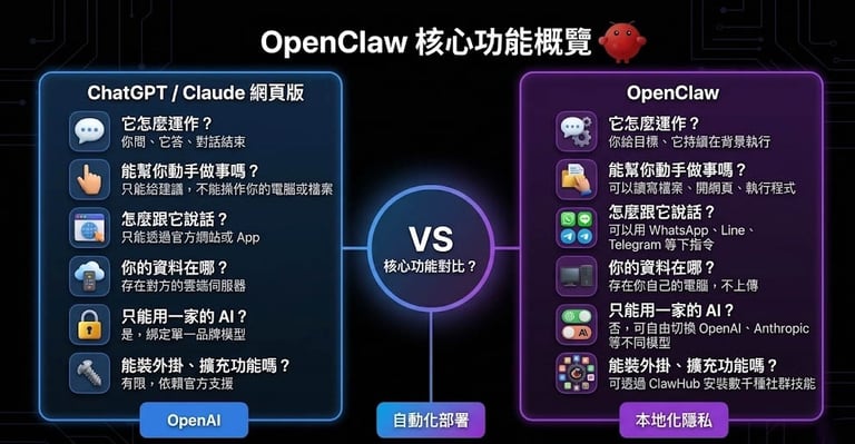 OpenClaw 與網頁版 AI 比較