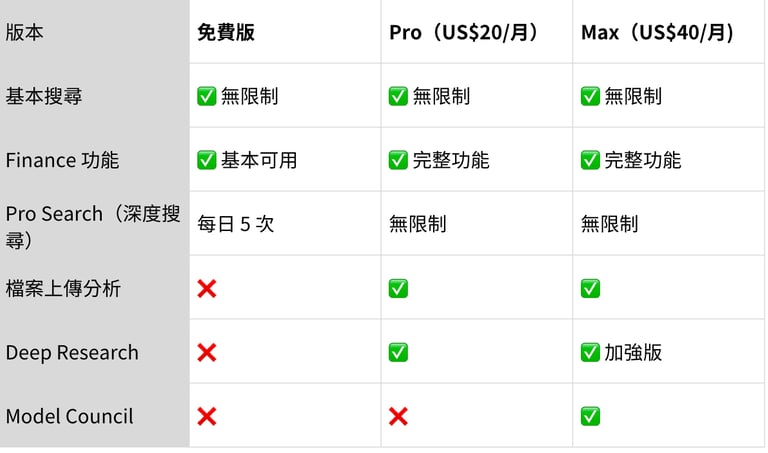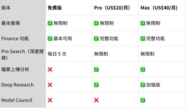 3. Perplexity 的免費版 vs Pro vs Max 怎麼選?