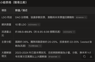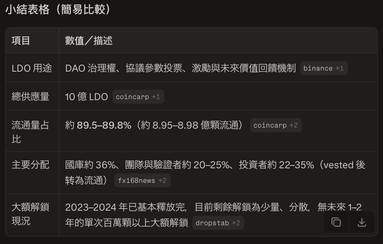 perplexity 總結 LDO 代幣經濟學