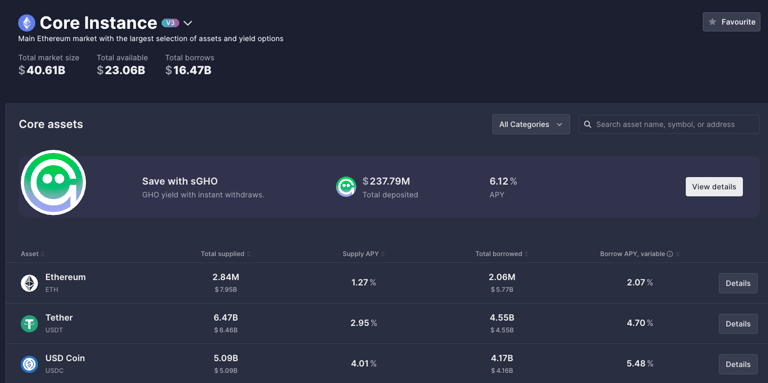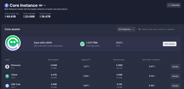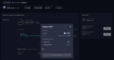 成功連接後,您需要根據您 USDC 資產所在的鏈,選擇對應的區塊鏈市場(Market)。接著,在資產列表中找到 USDC,點擊右側的「Details」按鈕。